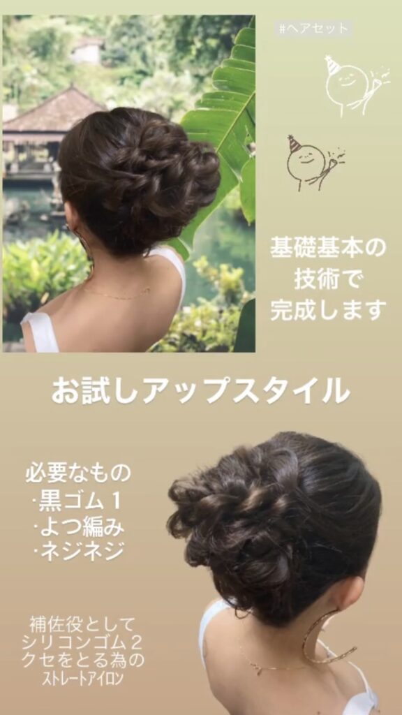 ヘアセット☆2つのアップスタイル画像と作り方ポイント